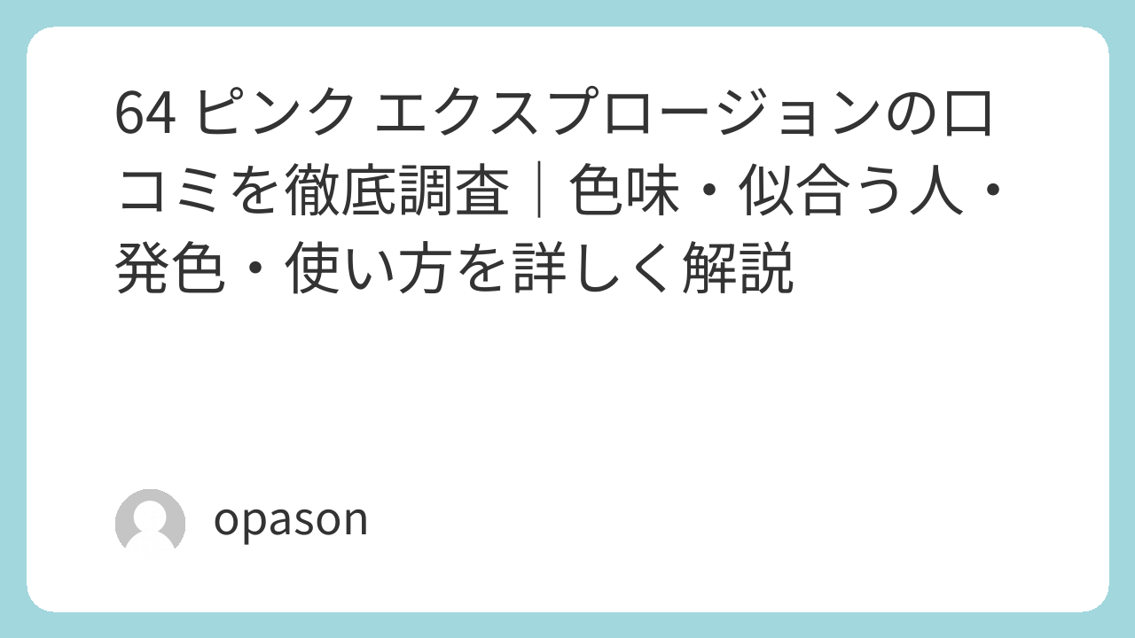 64 ピンク エクスプロージョンが気になる人が最初に知りたいこと