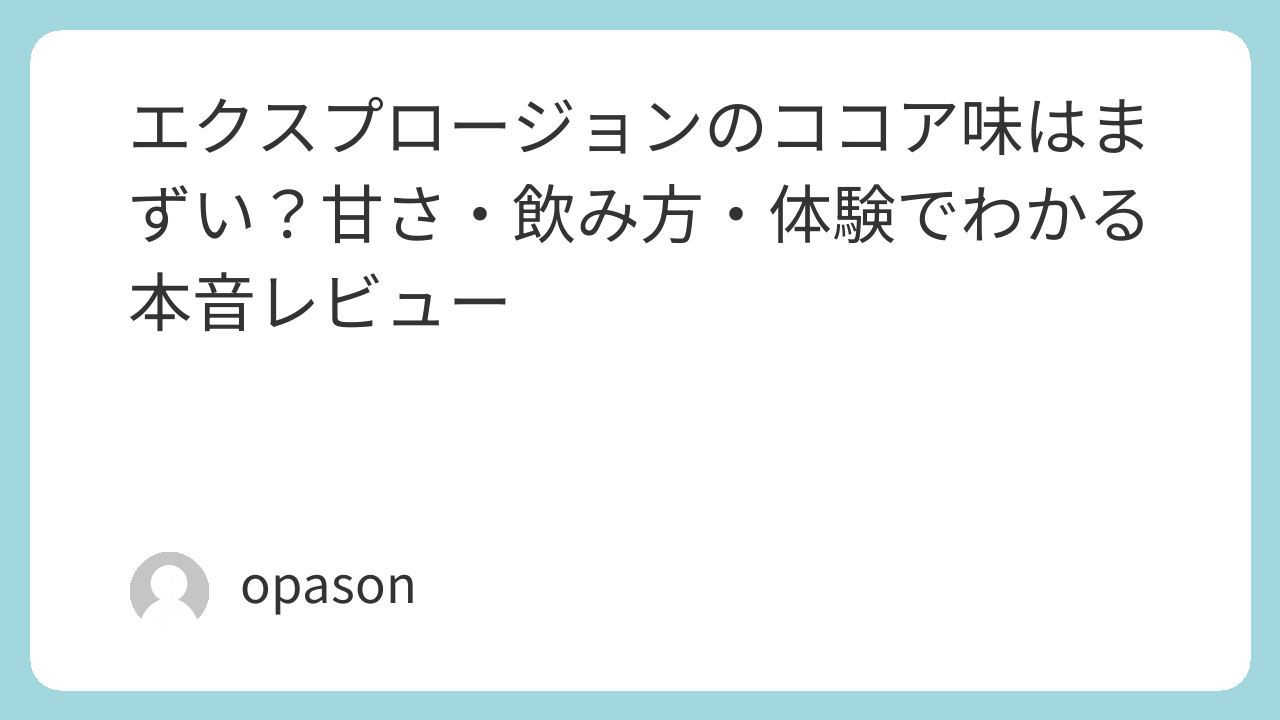 だからこそ、エクスプロージョン ココアは“万人受けする派手な味”ではなく、“毎日続けたい人に刺さる堅実な味”として捉えるのがしっくりきます。