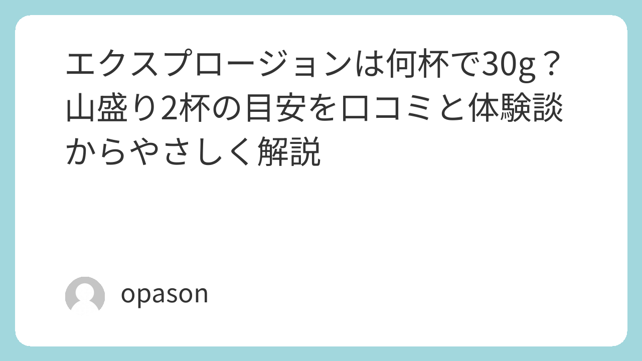 先に結論を書くと、エクスプロージョンは1回分の目安として付属スプーン山盛り2杯程度で約30gと考えるとわかりやすいです。検索している人の多くも、ここが知りたくて「何杯」と打ち込んでいます。