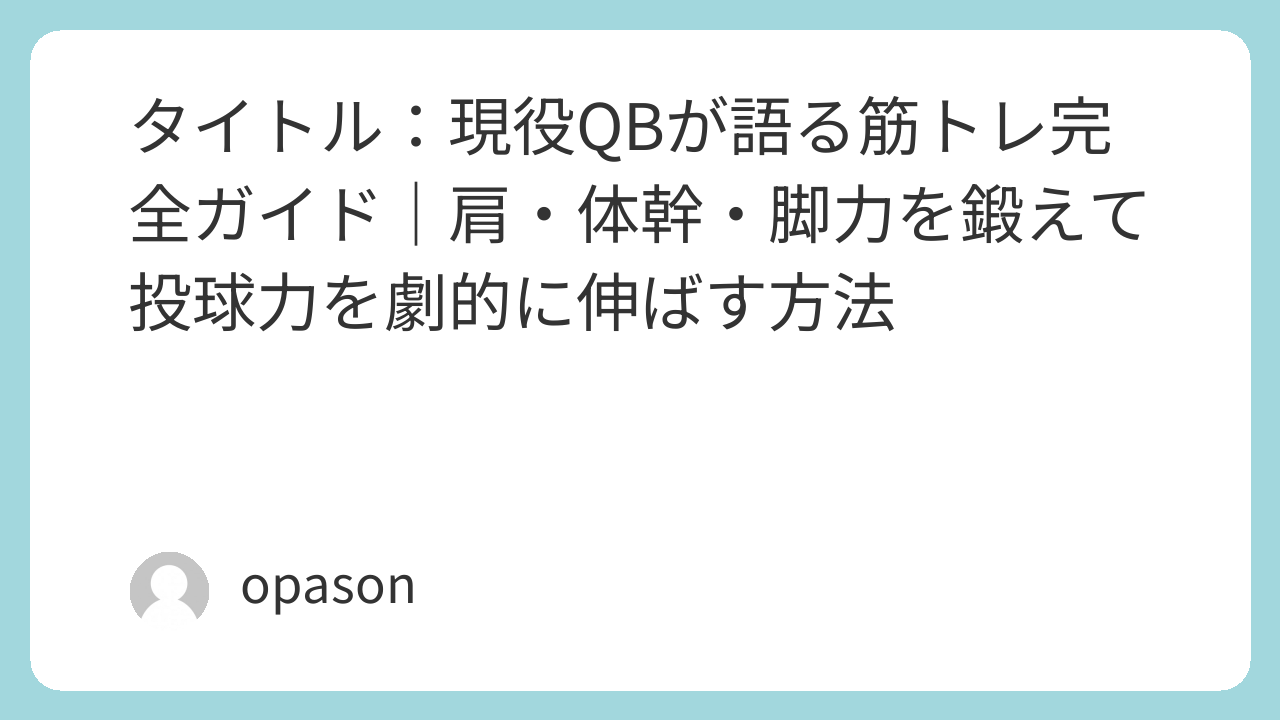 QBとしての筋トレは、単なる筋肉増強ではなく、投球力・動き・耐久性を総合的に高めるためのものです。肩のスタビリティ、体幹のパワー、そして下半身の爆発力をそれぞれバランス良く鍛えることで、ゲームでのパフォーマンスが変わります。