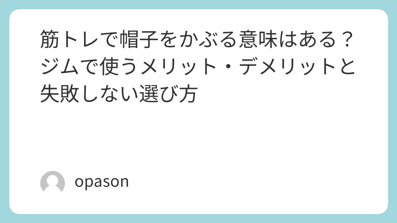 「筋トレ 帽子」と検索する人の多くは、帽子そのものを探しているというより、ジムで帽子をかぶる意味や、実際に便利なのかを知りたいはずです。だからこそこの記事では、筋トレ中に帽子を使うメリットとデメリット、向いている人、選び方まで、体験ベースを交えながらわかりやすくまとめます。