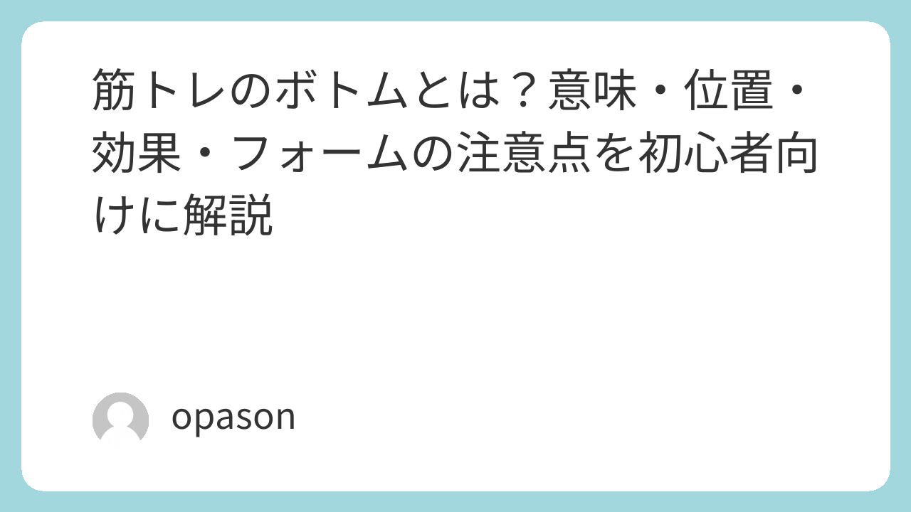 筋トレのボトムとは、単に「いちばん下の位置」というだけではありません。そこは、筋肉への刺激、可動域、安定性、そしてフォームの完成度が表れやすい重要なポイントです。