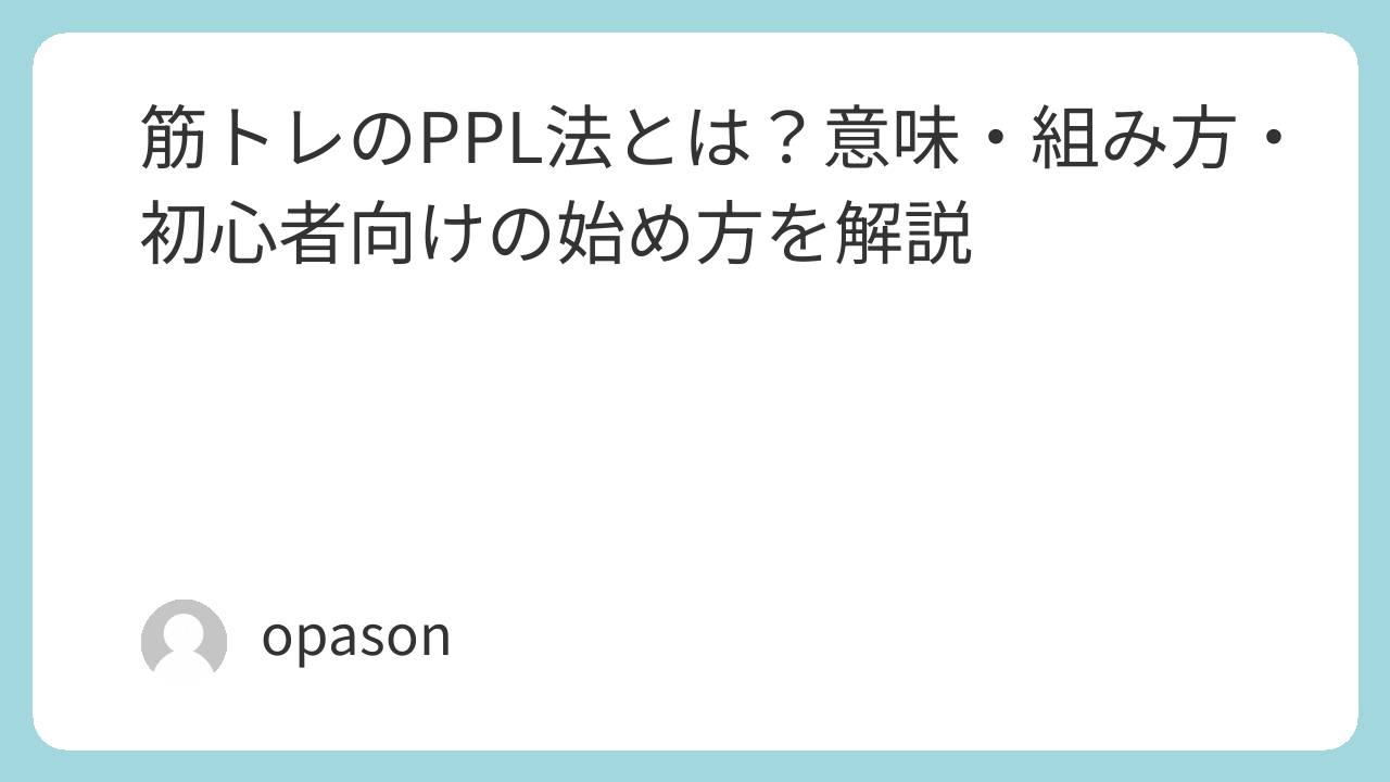 筋トレのメニューを調べていると、「PPL法」という言葉をよく見かけます。最初は略語だけ見てもわかりにくいのですが、内容は意外とシンプルです。