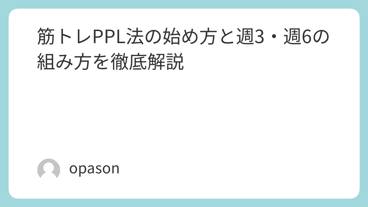 週6のPPL法は、Push、Pull、Legsを2周するスタイルです。たとえば月曜Push、火曜Pull、水曜Legs、木曜Push、金曜Pull、土曜Legs、日曜休みという流れです。
