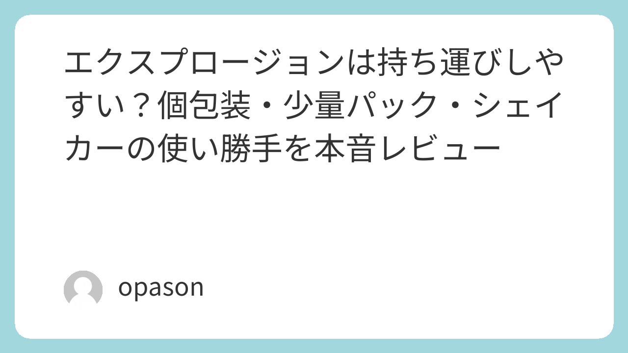 エクスプロージョンは、持ち運びしにくい大袋のイメージだけで判断すると少しもったいない商品です。実際には個包装、少量パック、小型シェイカーという選択肢があり、外でも使いやすい形を選べます。