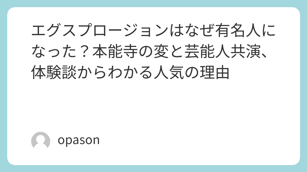 まとめ:エグスプロージョンは体験を武器に有名人になった
