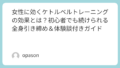 私の場合、初心者用の12kgケトルベルから始め、慣れたら16kgに変更することで、全身の筋肉に効いている感覚を実感できました。