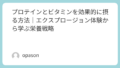 また、エクスプロージョンのプロテイン製品を併用している場合、トレーニング後に摂取すると、栄養補給がより効果的です。サプリメントを活用することで、運動後の体の回復を助けるとともに、栄養バランスが整うでしょう。