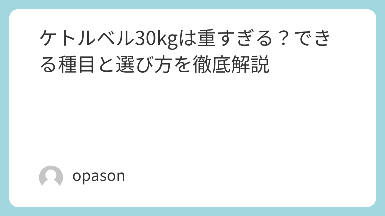 ケトルベル30kgは、たしかに重いです。そして、多くの人にとって最初の1個には向きません。ですが、だからこそ価値がある重量でもあります。