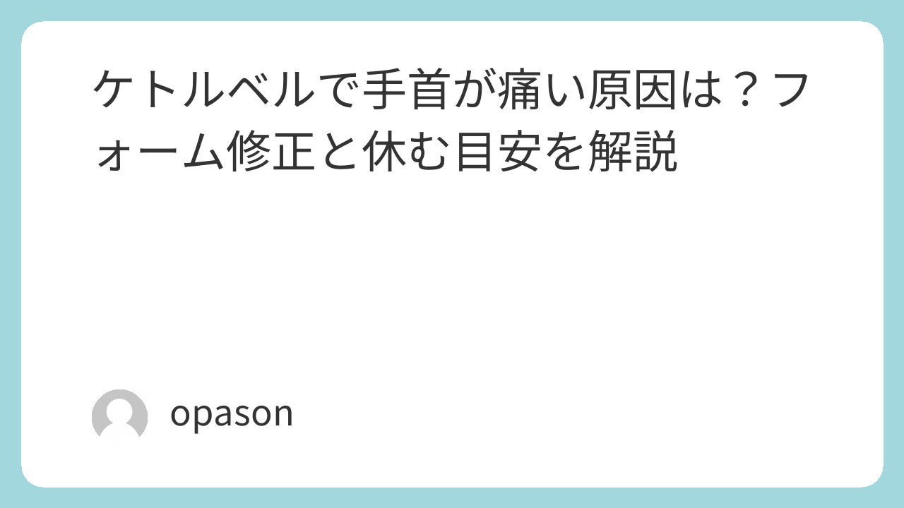 ただし、何でもフォームのせいにして続ければよいわけではありません。腫れ、熱感、しびれ、日常生活でも痛いといった場合は、単なる違和感とは分けて考える必要があります。この記事では、ケトルベルで手首が痛いときによくある原因、見直したいフォーム、私が実際に意識して改善しやすかったポイント、そして無理をしないための休む目安まで、順を追って解説します。
