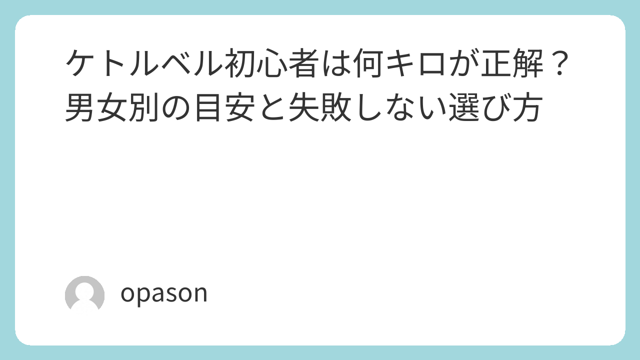 よく「男性は16kg、女性は8kgから」といわれますが、これはある程度の基準としては参考になります。ただ、現実には運動経験がほとんどない人も多く、全員に当てはまるわけではありません。最初の1個は、理想論よりも続けやすさを優先したほうが結果的に満足しやすいです。