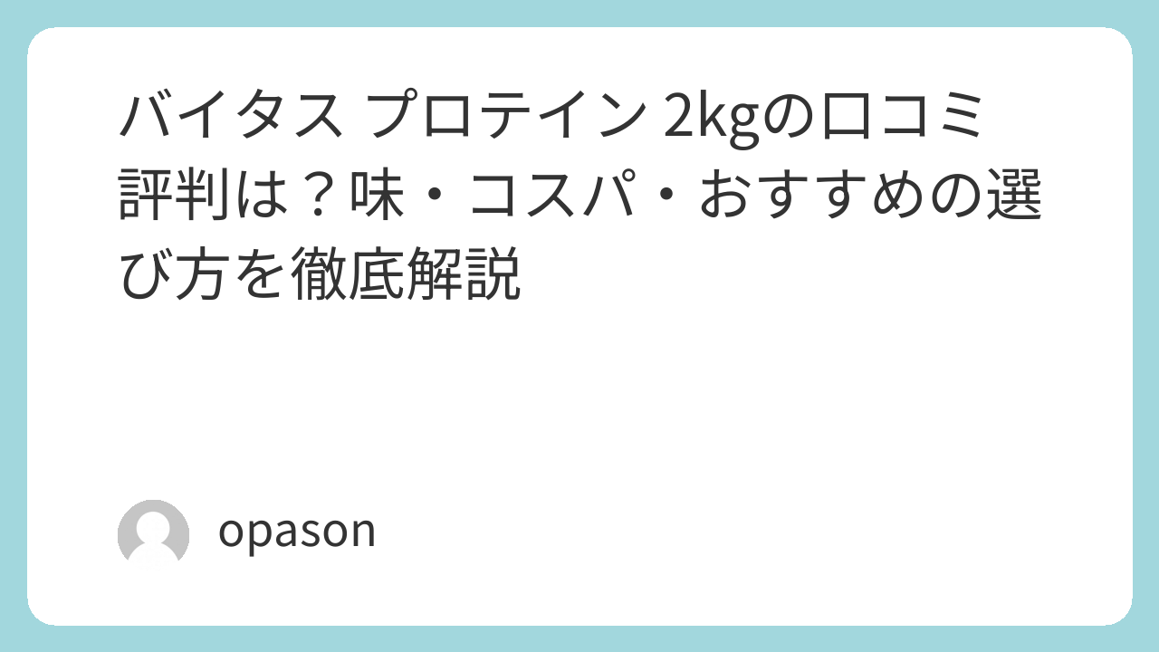 つまり、バイタス プロテイン 2kgは、味の個性を楽しみながら続けたい人には合いやすい一方で、極端にナチュラル志向の人や価格最優先の人には合わない場合があるということです。