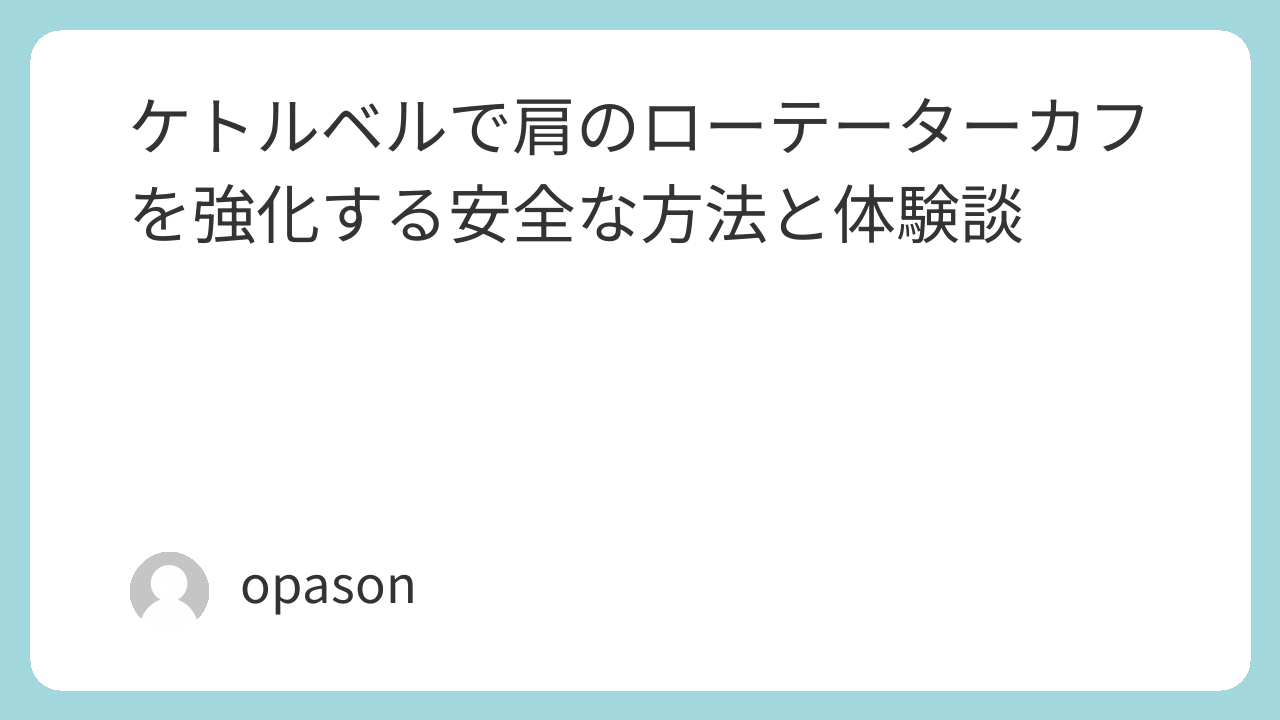 肩の補助筋群を使い、ケトルベルをゆっくり持ち上げることでローテーターカフも間接的に強化できます。私の場合、毎回10回×3セットで、肩の疲労感が徐々に減少しました。