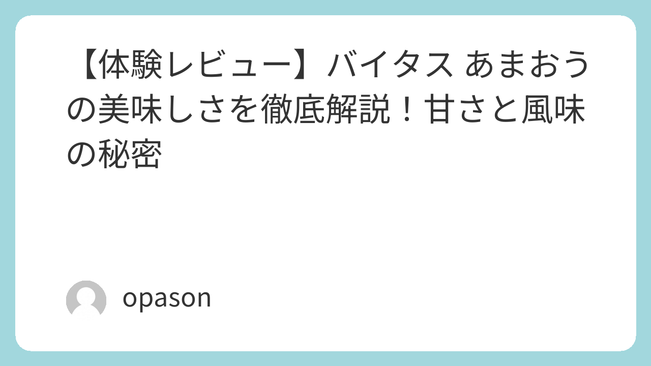 バイタスにはあまおう以外にも、さまざまなフルーツフレーバーがありますが、あまおうはその甘さと風味が非常に特徴的です。他のフレーバーはフルーツの風味が比較的控えめである一方、あまおうは甘さがしっかりしており、フルーツそのものの香りが強い印象を受けました。風味や食感を重視するなら、あまおうが一番満足度が高いかもしれません。