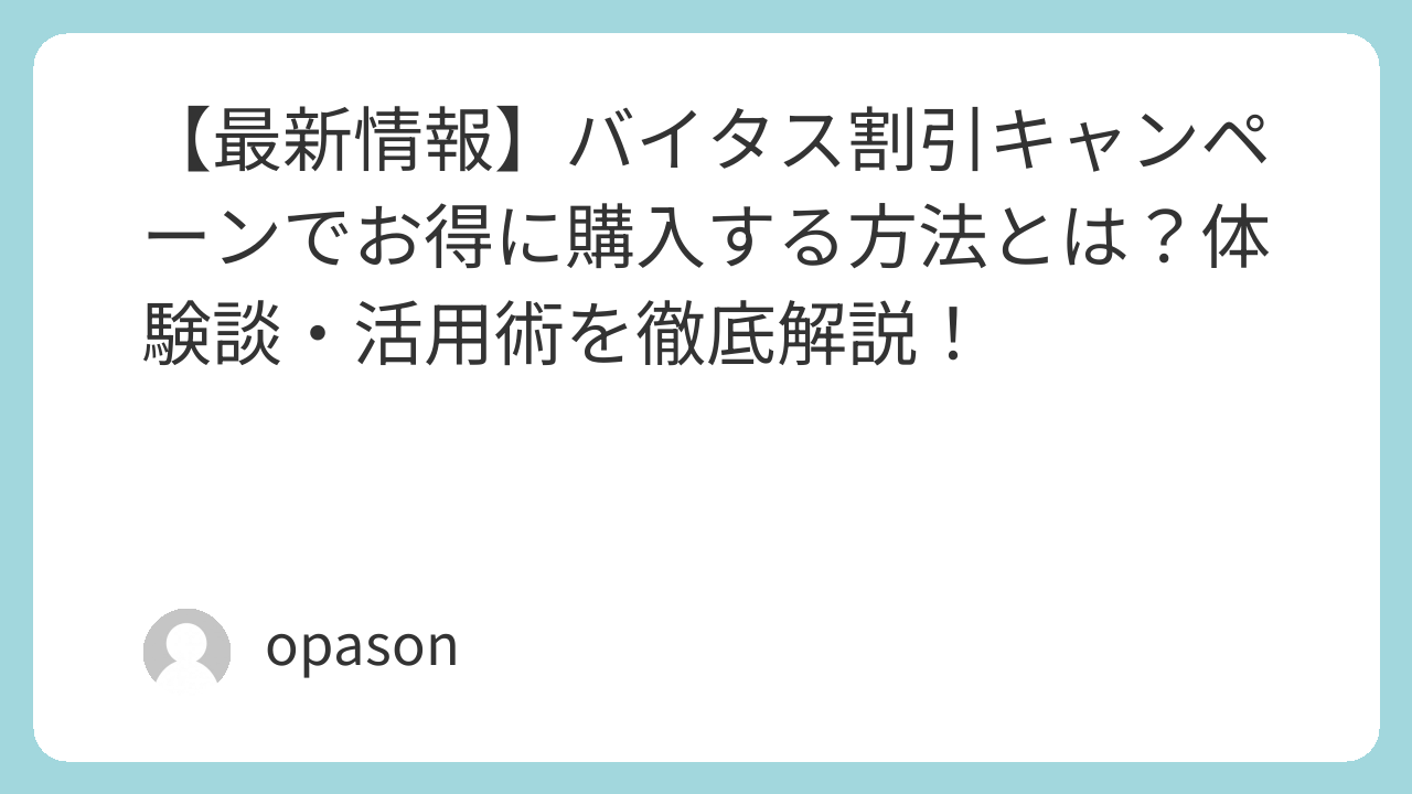 【最新情報】バイタス割引キャンペーンでお得に購入する方法とは?体験談・活用術を徹底解説!