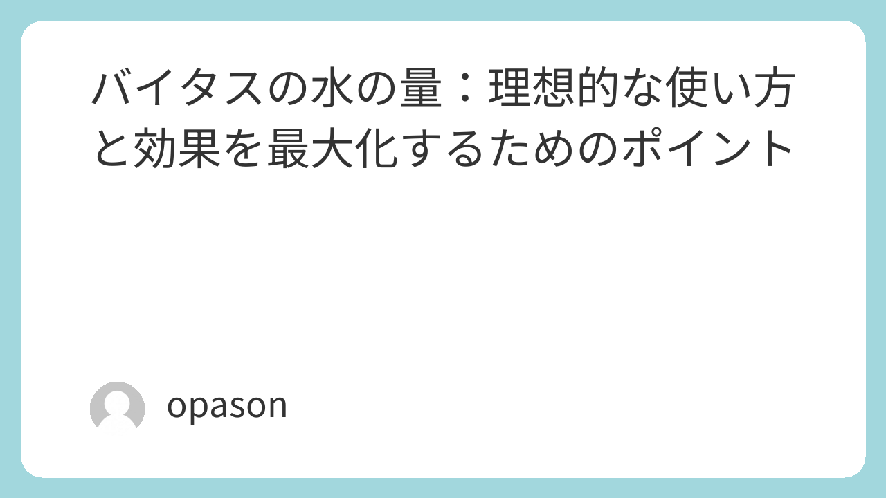 バイタスを使用する際の水量は、製品のパッケージに記載された量が基本の目安となります。しかし、私は個人的に少し多めの水で摂取する方が、体内での吸収も良く、飲みやすくなると感じました。