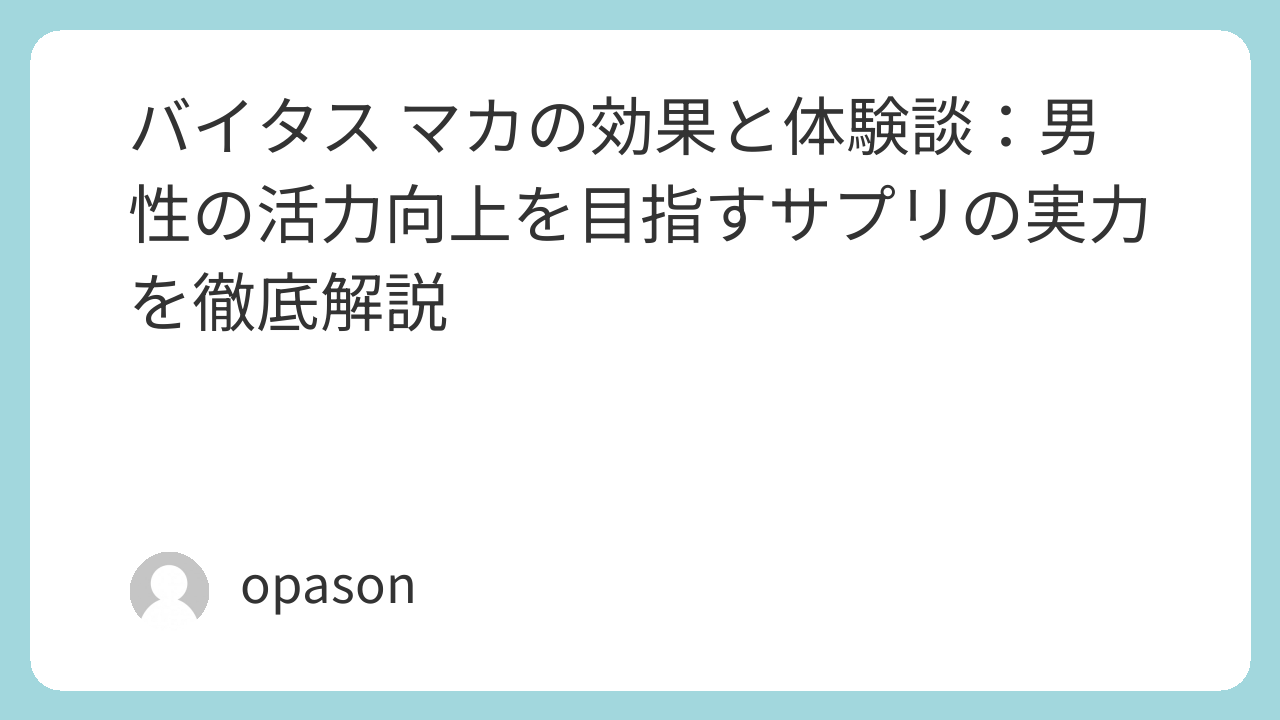 バイタス マカは、男性の活力向上をサポートするために非常に有効なサプリメントです。体力の回復やエネルギー増加、性生活の改善に貢献することが多く、実際に使用した人々の体験談からもその効果が確認されています。副作用のリスクは少なく、使いやすいサプリメントとして、継続的に取り入れる価値があります。