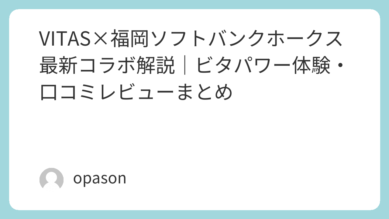 「VITAS×福岡ソフトバンクホークス」というコラボレーションは、スポーツファンと健康志向の人々を一度に引きつける注目の取り組みです。VITAS(バイタス)と福岡ソフトバンクホークスのコラボレーションに関して、サプリメント「VITA POWER」の効果や体験談を通じて、その魅力を詳しく解説します。実際に使用した感想や口コミも交えながら、VITAS×ホークスコラボの全貌をお届けします。