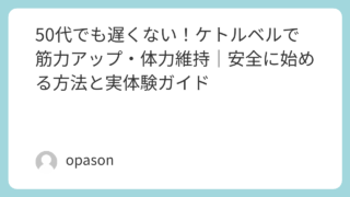 はじめに:50代から始めるケトルベルの魅力50代になると、筋肉量や基礎代謝の低下を感じる人は少なくありません。私自身も運動不足を痛感していましたが、を取り入れたトレーニングで、全身の筋力と体幹を同時に鍛えられることに気づきました。日常生活の...