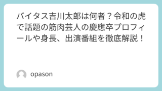 未分類 バイタス吉川太郎は何者?令和の虎で話題の筋肉芸人の慶應卒プロフィールや身長、出演番組を徹底解説!