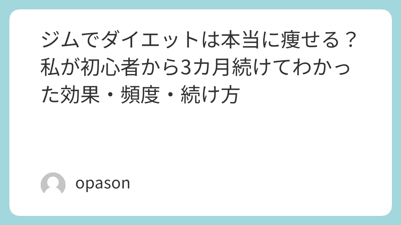 ジムダイエットは、派手なメニューよりも再現しやすいメニューのほうが強いです。毎回ゼロから考えなくていい状態を作れたのが、私には大きかったです。