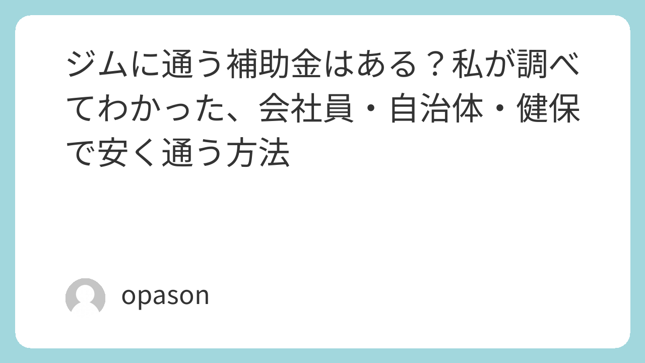 そう思って「ジムに通う補助金」と検索したのが最初でした。