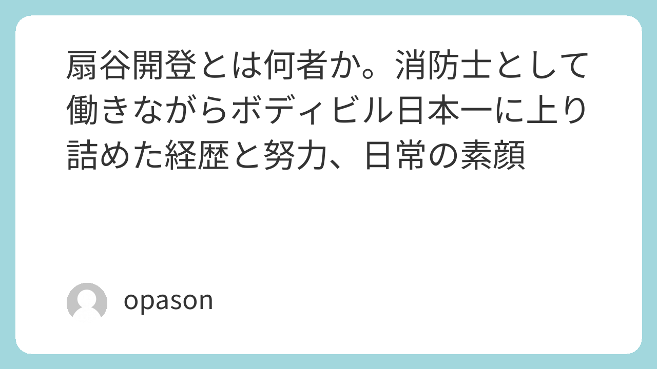 私にとって扇谷開登は、ただのボディビル日本一ではない。きつい現実の中で、自分を甘やかさずに積み上げてきた人だ。だからこそ、名前を知ったあと、もっと深く知りたくなる。検索される理由は、まさにそこにある。