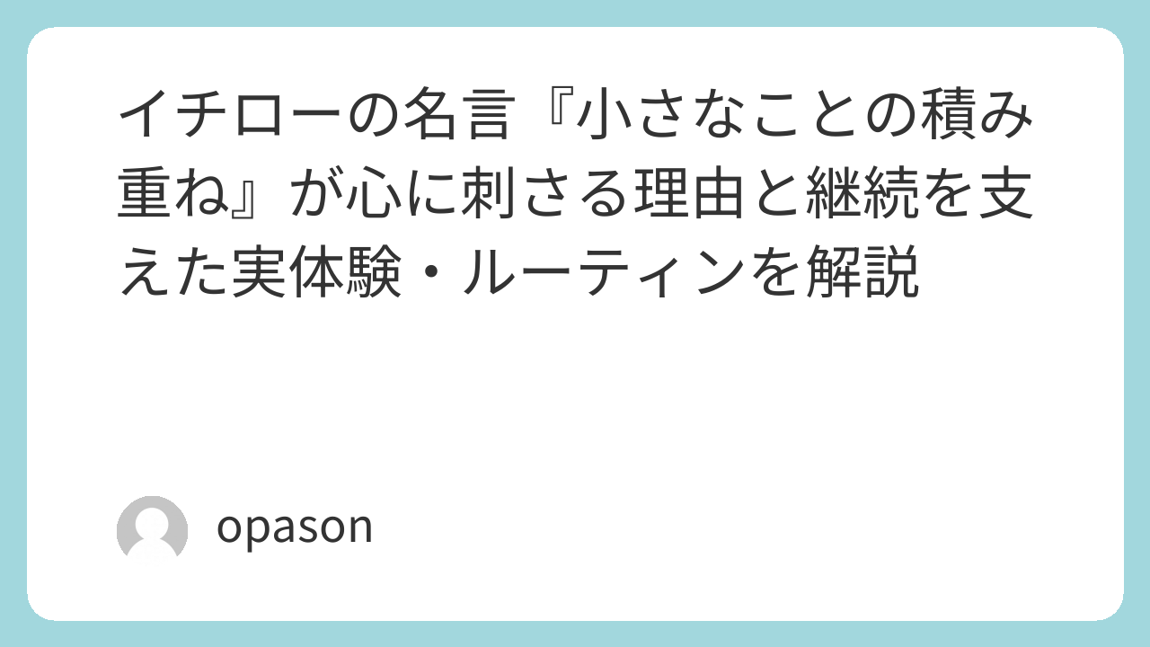 イチローの「小さなことの積み重ね」という名言は、努力を強いる言葉ではありません。むしろ、目立たない毎日に意味を与えてくれる言葉です。だからこそ、苦しい時ほど思い出したくなるし、何度でも検索したくなる。私にとってもこの言葉は、前へ進めない日に気持ちを立て直してくれる、静かな支えのような存在です。