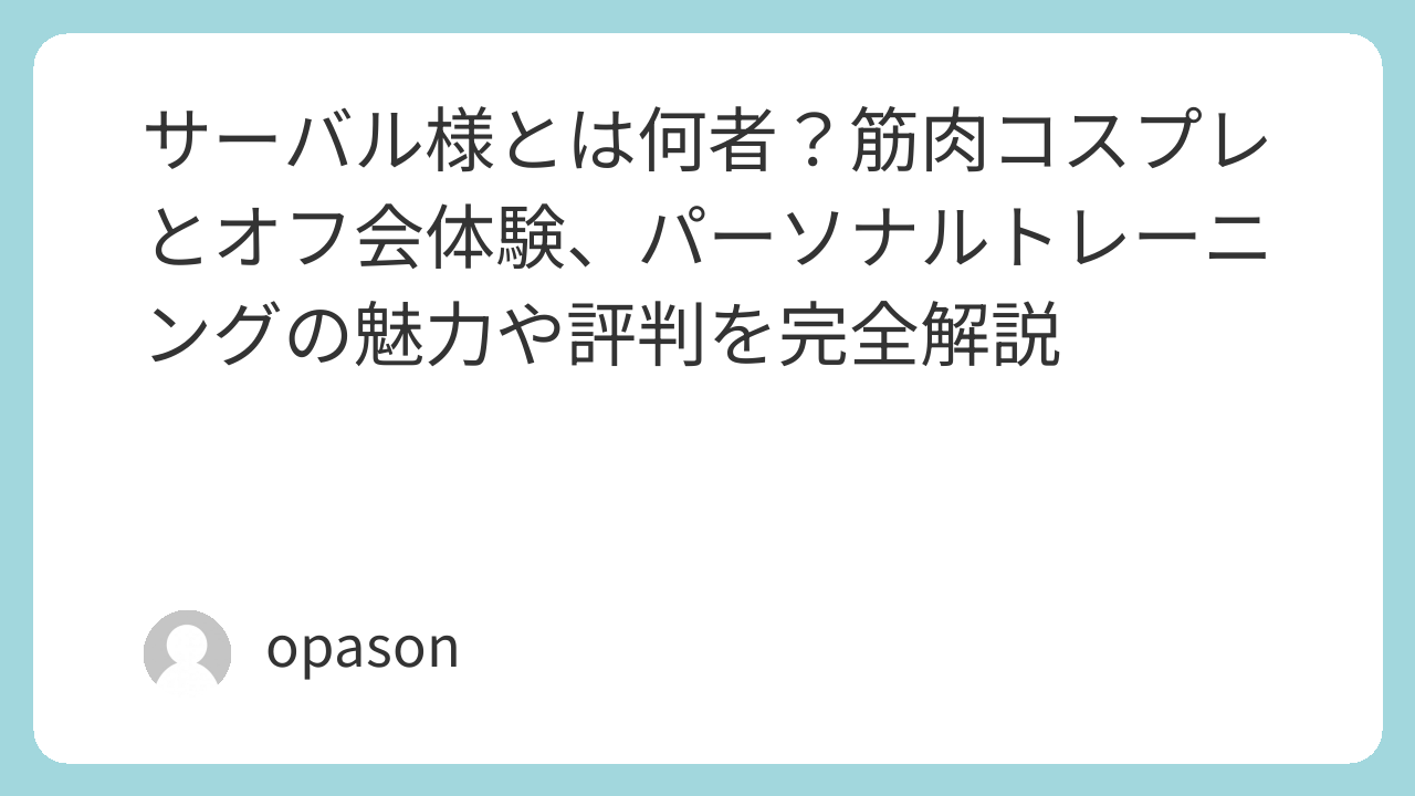 私が情報を読んでいて面白かったのは、身体づくりが自己満足で閉じていないことでした。鍛えた身体をただ披露するのではなく、キャラクター表現に変換して届ける。この変換のうまさがあるからこそ、「筋肉がすごい人」ではなく「サーバル様」という名前で認識されているのだと思います。