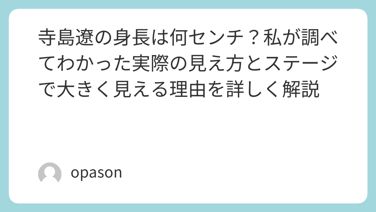 寺島遼の身長が気になって、私が最初に確かめたこと