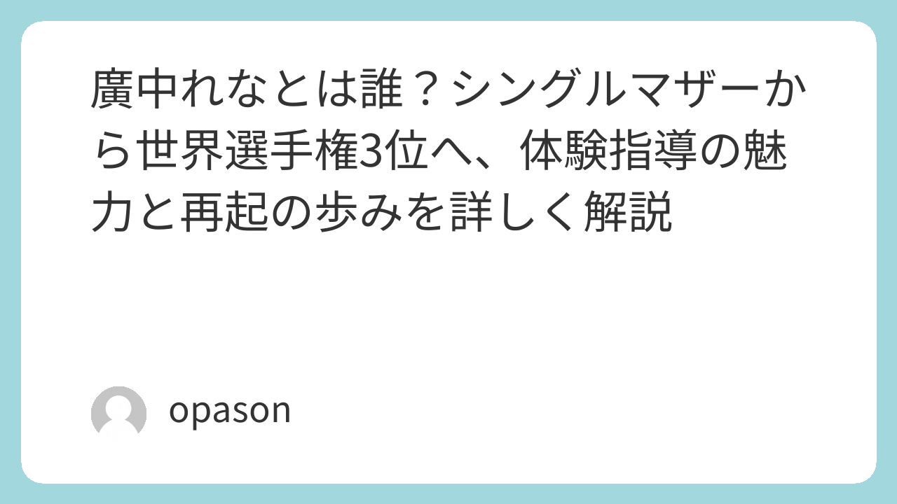 体験指導に惹かれる人は、完璧な理論だけを求めているわけではありません。むしろ、自分と同じように迷ったことがある人から学びたいと思うものです。その意味で、廣中れなさんの価値は、競技実績の高さだけでなく、体験の濃さにあると私は思います。
