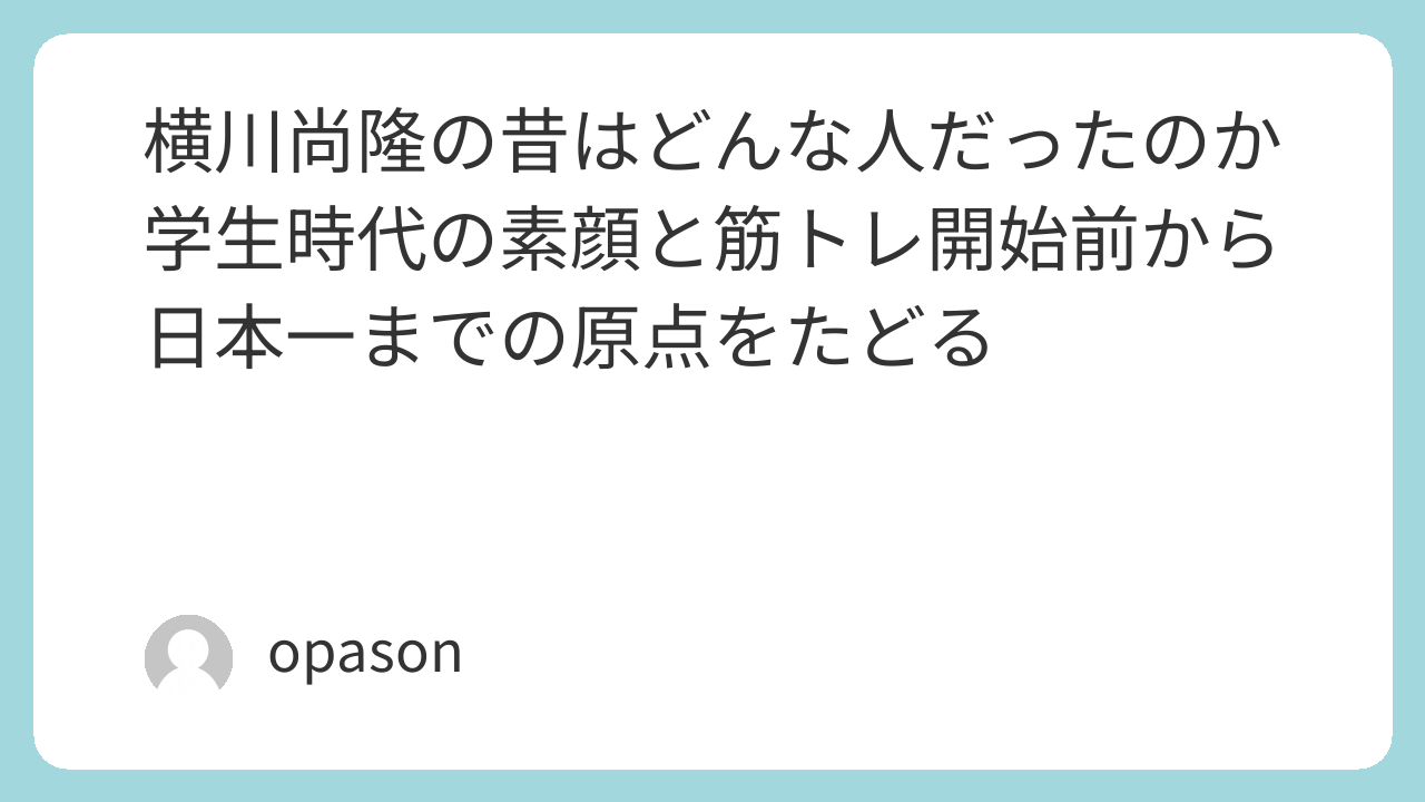 私はこのテーマを調べる中で、横川尚隆さんの言葉に妙なリアリティを感じました。それは、筋トレを始めた理由が、ただ美しい目標だけで説明されていないからです。
