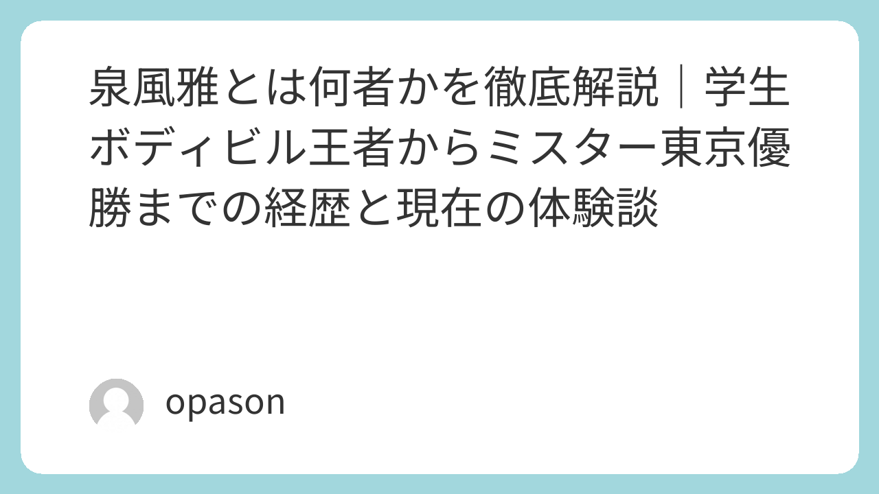 泉風雅さんについて調べ終えて、私の中に残ったのは、学生王者やミスター東京優勝者という肩書き以上に、試行錯誤を続ける競技者の姿だった。けがをきっかけに筋トレを始め、憧れを進路につなげ、結果を出し、離脱も経験し、それでも戻ってきた。その歩みはとても立体的だ。