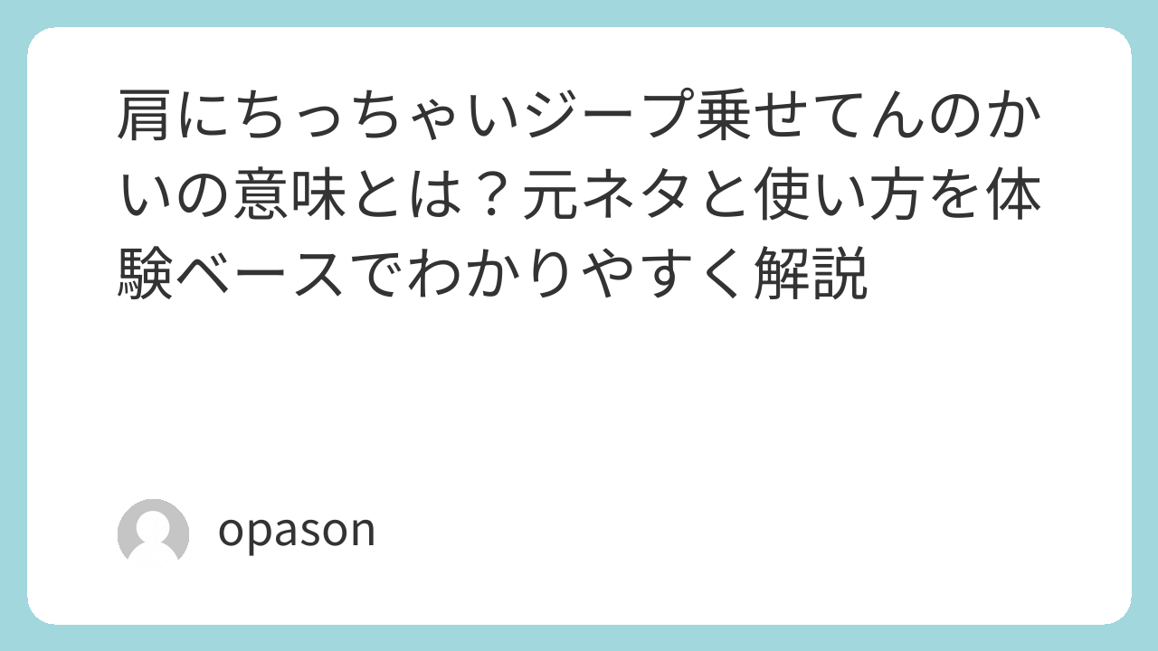 もし今、「肩にちっちゃいジープ乗せてんのかいって何?」と気になっているなら、答えはシンプルです。