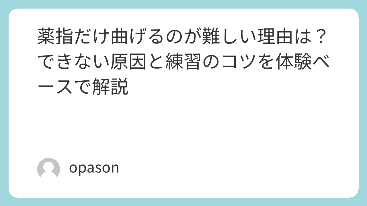 この記事では、薬指だけ曲げるのが難しい理由、実際にやってみて分かったコツ、うまくいかなかった練習、続ける中で感じた変化をまとめます。薬指が言うことを聞かずに困っている人にとって、遠回りを減らすヒントになればうれしいです。