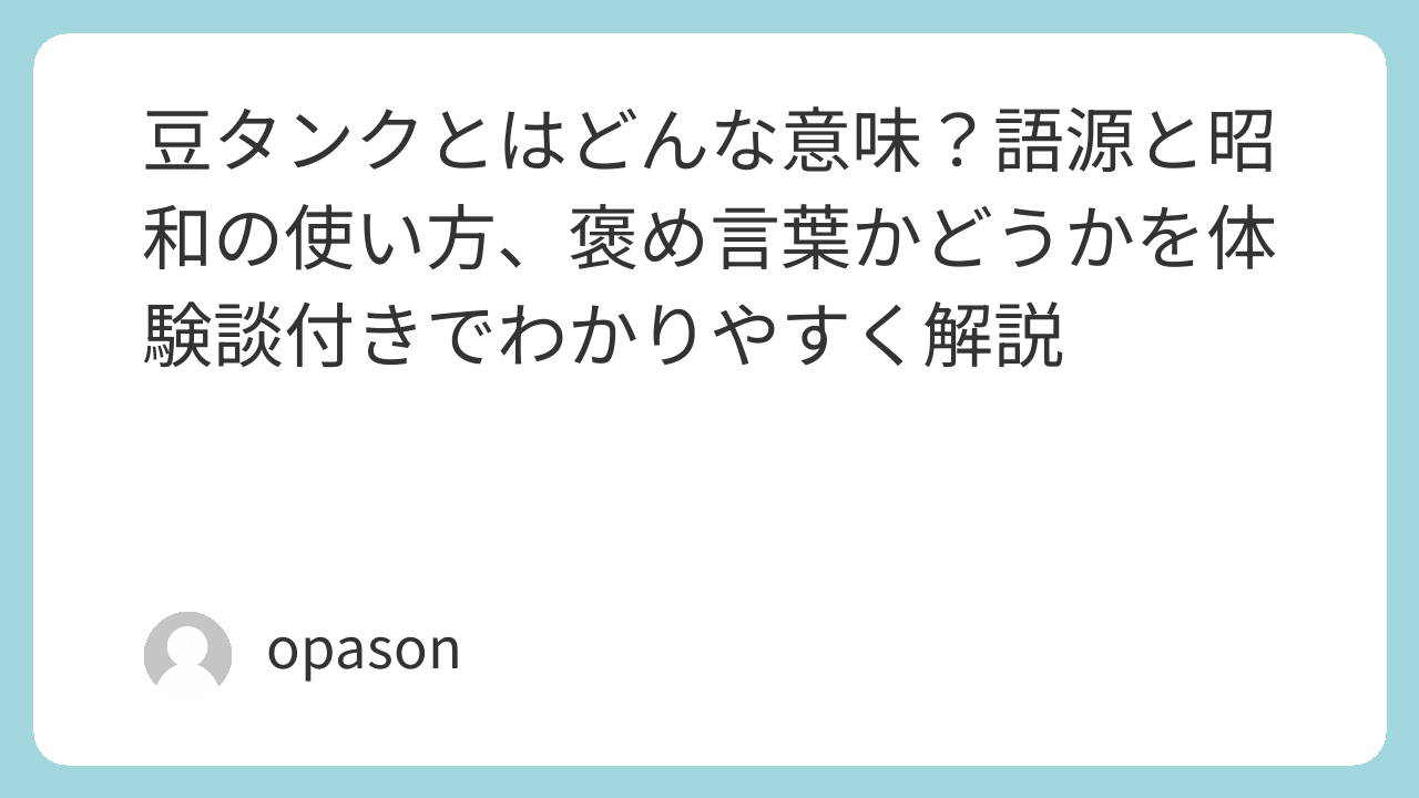 豆タンクとは?私が最初に気になったのは「褒め言葉なのか」という点でした