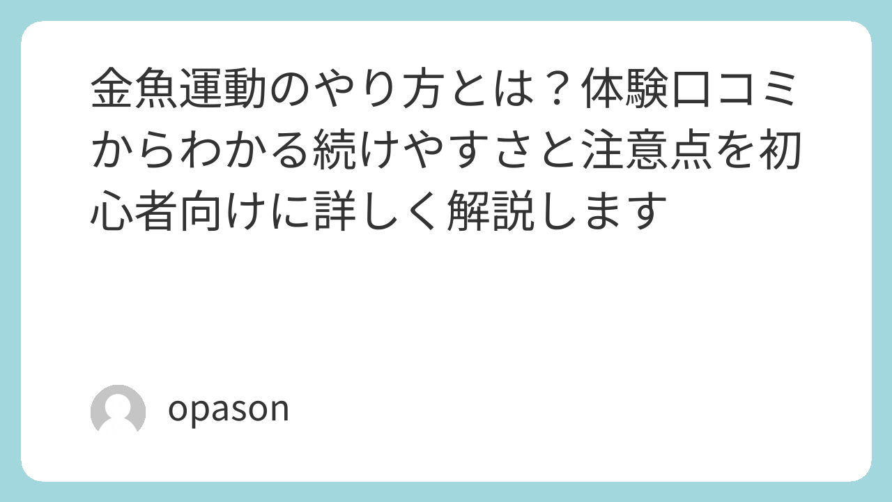 このあたりは地味ですが、実際にはかなり重要です。金魚運動を良い印象で続けられる人は、最初から頑張りすぎない傾向があるように感じました。