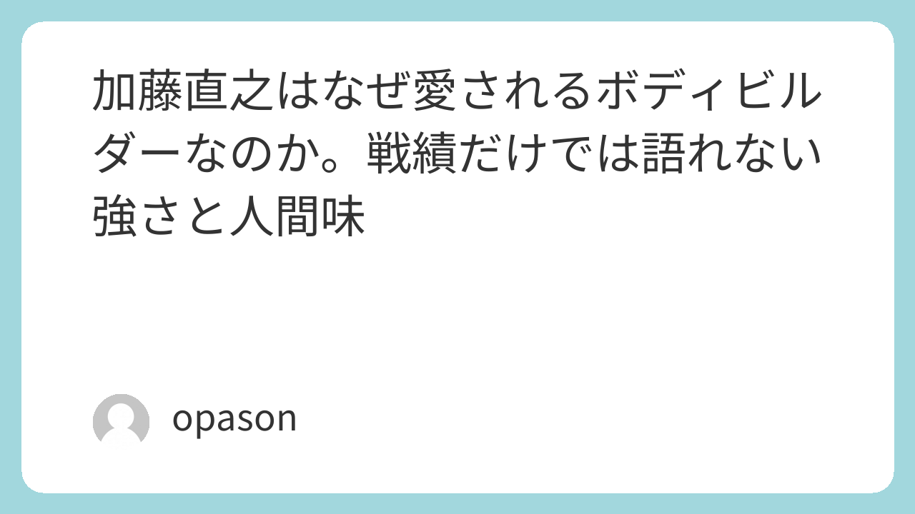加藤直之というボディビルダーを調べて、いちばん印象に残ったこと