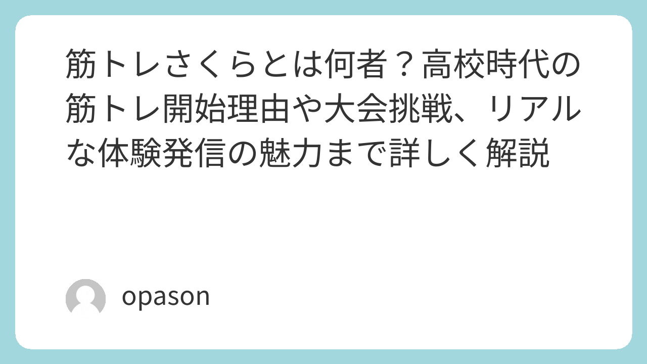 高校時代の何気ないスタート、痩せたい気持ちから筋肉のかっこよさへ移った価値観、話題を集めた象徴的な動画、地道な記録習慣、減量と大会挑戦のリアル。こうした要素が一本につながっているからこそ、「筋トレさくら」は気になる存在になります。