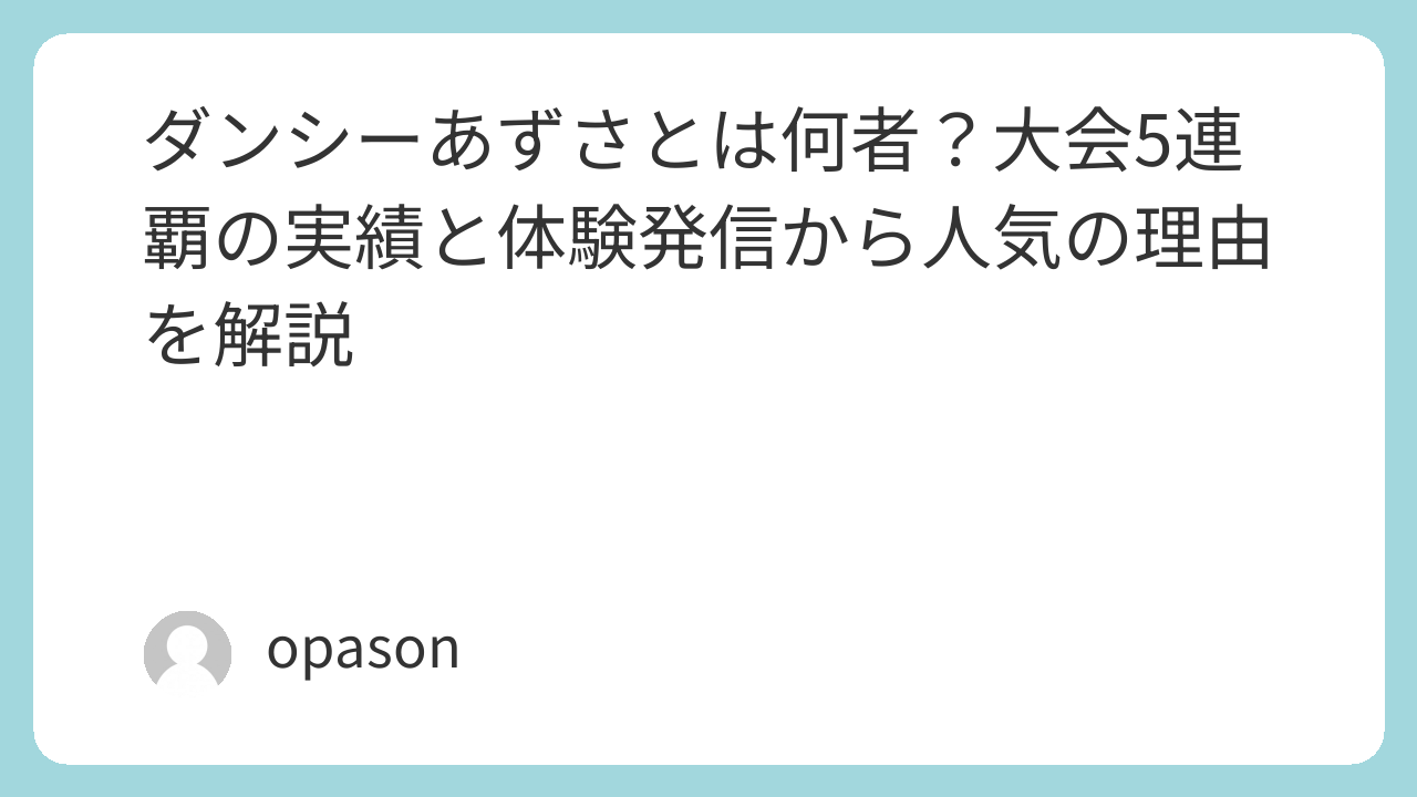 検索する側としては、やはり実績は気になります。どれだけ発信が上手でも、実力が伴っていなければ説得力は弱くなるからです。その点、ダンシーあずさは国内大会で複数年にわたって結果を出し続けてきた選手として知られています。