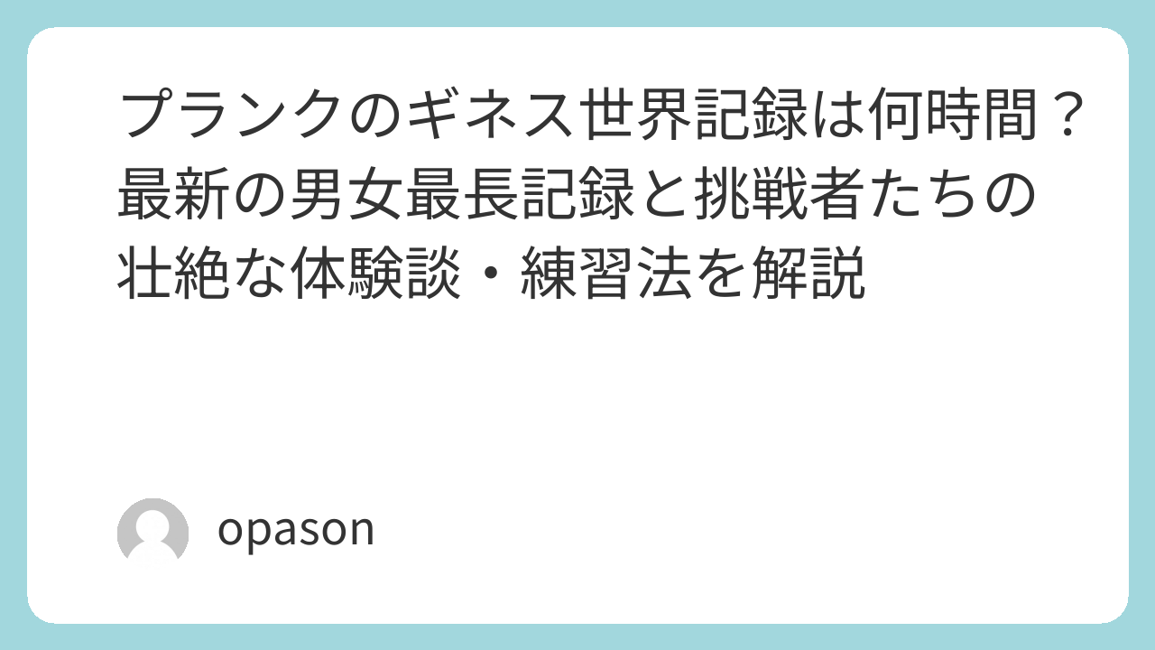 プランクのギネス世界記録は、確かに驚異的です。男性は9時間38分47秒、女性は4時間30分11秒。この数字だけでも十分インパクトがあります。ただ、本当に心に残るのは、その長い時間の中で挑戦者たちが何を思い、何に耐え、何を支えにしていたのかという体験の部分でした。