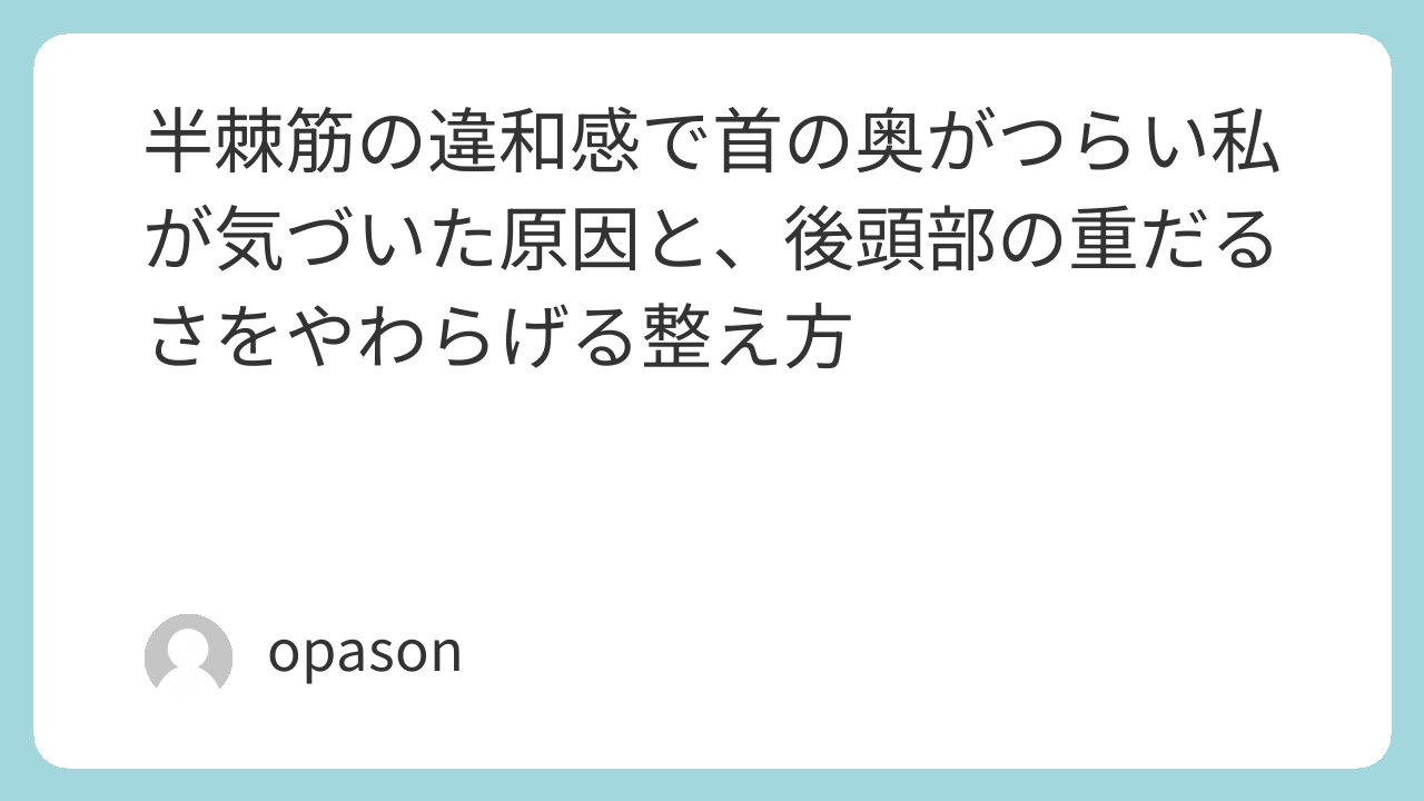 半棘筋という言葉を知ってよかったのは、「肩こり」とひとまとめにしていた不調を、もう少し細かく見られるようになったことです。肩の上がつらいのか、首の横が張るのか、それとも首の奥が重いのか。場所の違いを意識するだけで、対処の方向も少し変わりました。