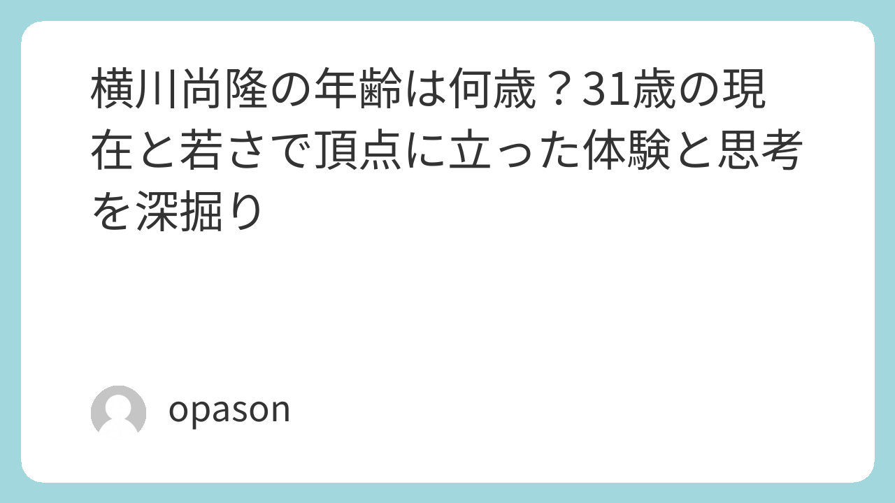 もし「横川尚隆 年齢」と検索してこの記事にたどり着いたなら、まず答えは31歳です。そして、その数字に驚いたなら、ぜひその先の歩みにも目を向けてほしいと思います。年齢を知るだけでも検索の目的は達成できますが、そこに至るまでの体験を知ると、横川尚隆さんという人物の見え方はかなり変わってくるはずです。