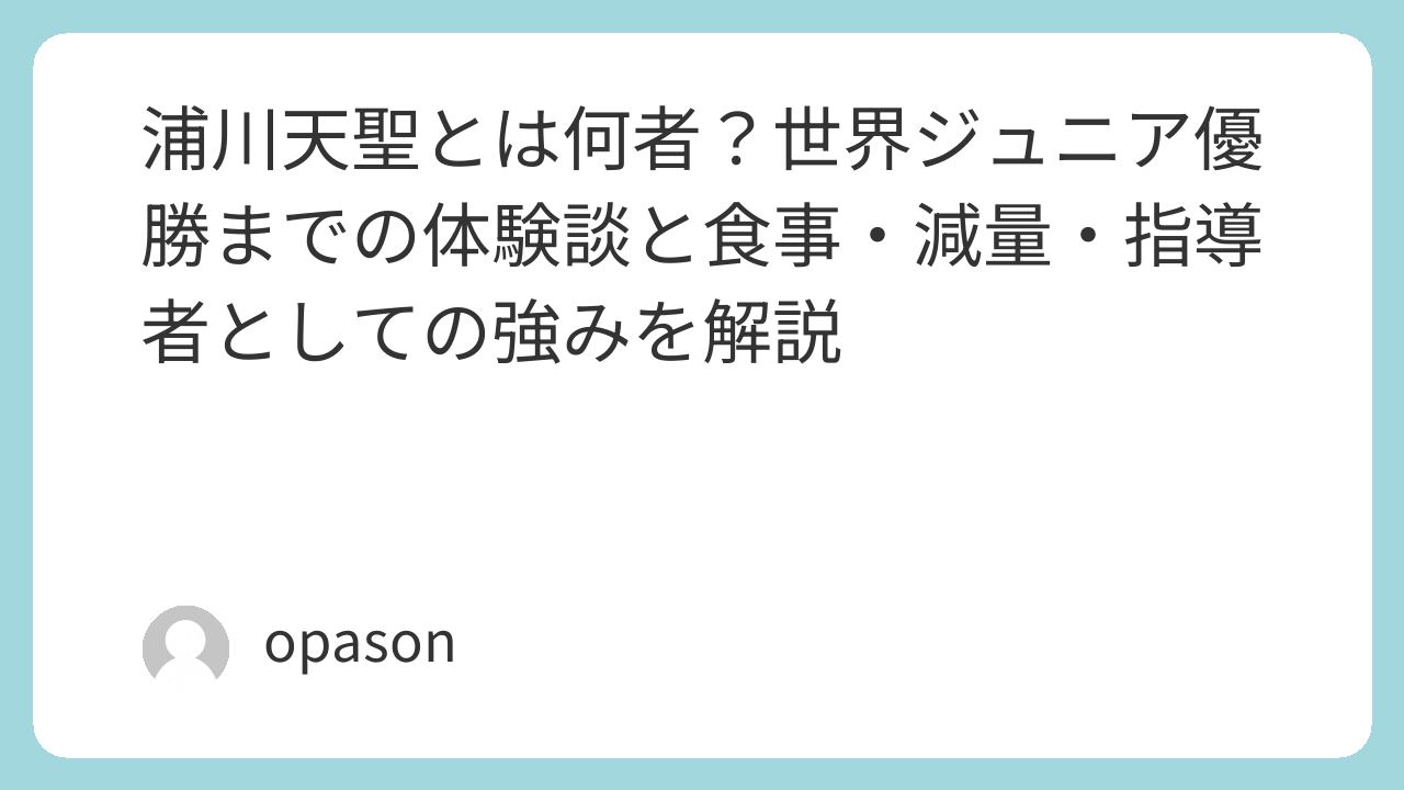「浦川天聖」と検索する人は、単に大会で勝った選手のプロフィールを知りたいわけではないはずです。私自身もそうでした。戦績だけなら数行で終わりますが、本当に気になるのは、どういう積み重ねの先にその結果があったのか、どんな考え方で体をつくってきたのか、そして今はどんな立場で人を指導しているのか、という部分でした。