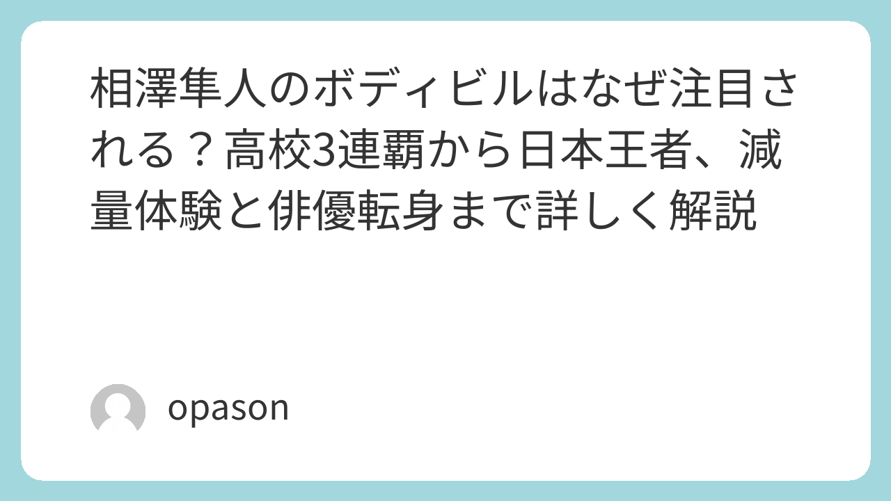 もちろん、ボディビルと俳優では求められるものが違います。それでも、ストイックに自分を磨き、外に伝わる形に仕上げていくという意味では、共通する部分も多いでしょう。私はこの転身の話を知って、相澤隼人という人は、単に競技の枠に収まる人物ではないのだと感じました。