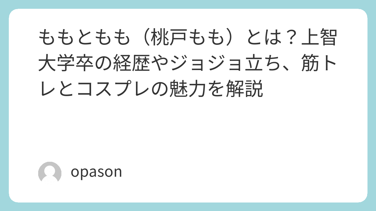ももともも(桃戸もも)とは?上智大学卒の経歴やジョジョ立ち、筋トレとコスプレの魅力を解説