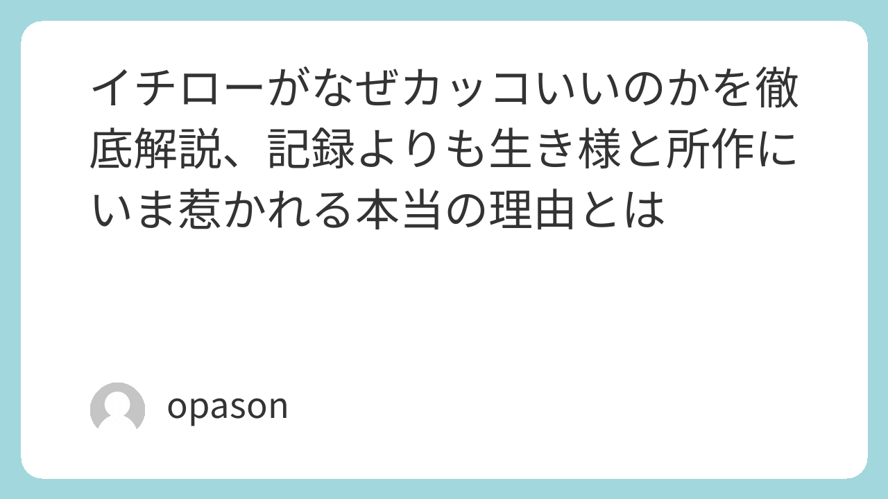 だから今でも「イチロー カッコいい」と検索する人が絶えないのだと思います。昔の名選手として懐かしむだけではなく、いま見てもなお、自分の生き方を見直したくなる何かを持っている。過去の人ではなく、現在にも効いてくる存在だからこそ、検索され続けるのです。