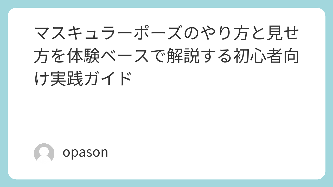 この記事では、私自身が練習の中でつまずいた点や、実際に改善できたポイントを中心に、マスキュラーポーズのやり方と見せ方をわかりやすくまとめます。初心者の方が最初に知っておくと遠回りしにくい内容を、できるだけ実感ベースで書いていきます。