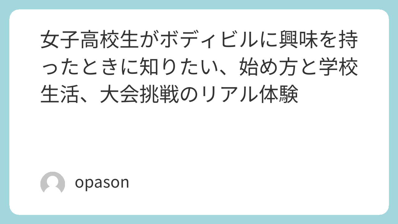 ボディビルに興味を持ったその気持ちは、決して大げさなものではありません。何かを始めたい、自分を変えたいという、ごく自然で前向きな感情です。その入口に立っている女子高校生にとって、必要なのは派手な情報ではなく、少し先を歩いた人のリアルな体験なのだと、私は強く感じました。