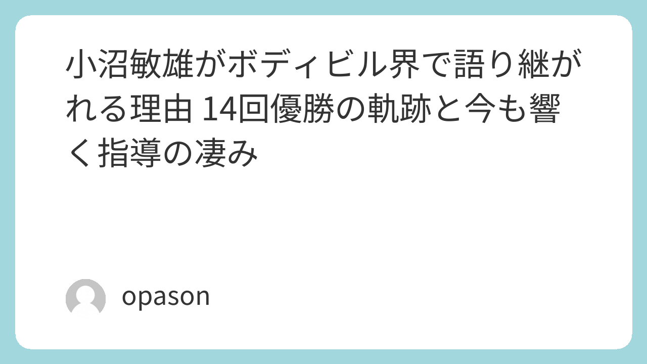 私自身、ボディメイクや筋トレに関する情報を調べるときは、まず大会実績を見ます。けれど、長く印象に残る人は、結局のところ「その人がどんな姿勢で競技に向き合ってきたか」「まわりの人にどう語られているか」で決まることが多いと感じています。小沼敏雄さんは、まさにその典型でした。